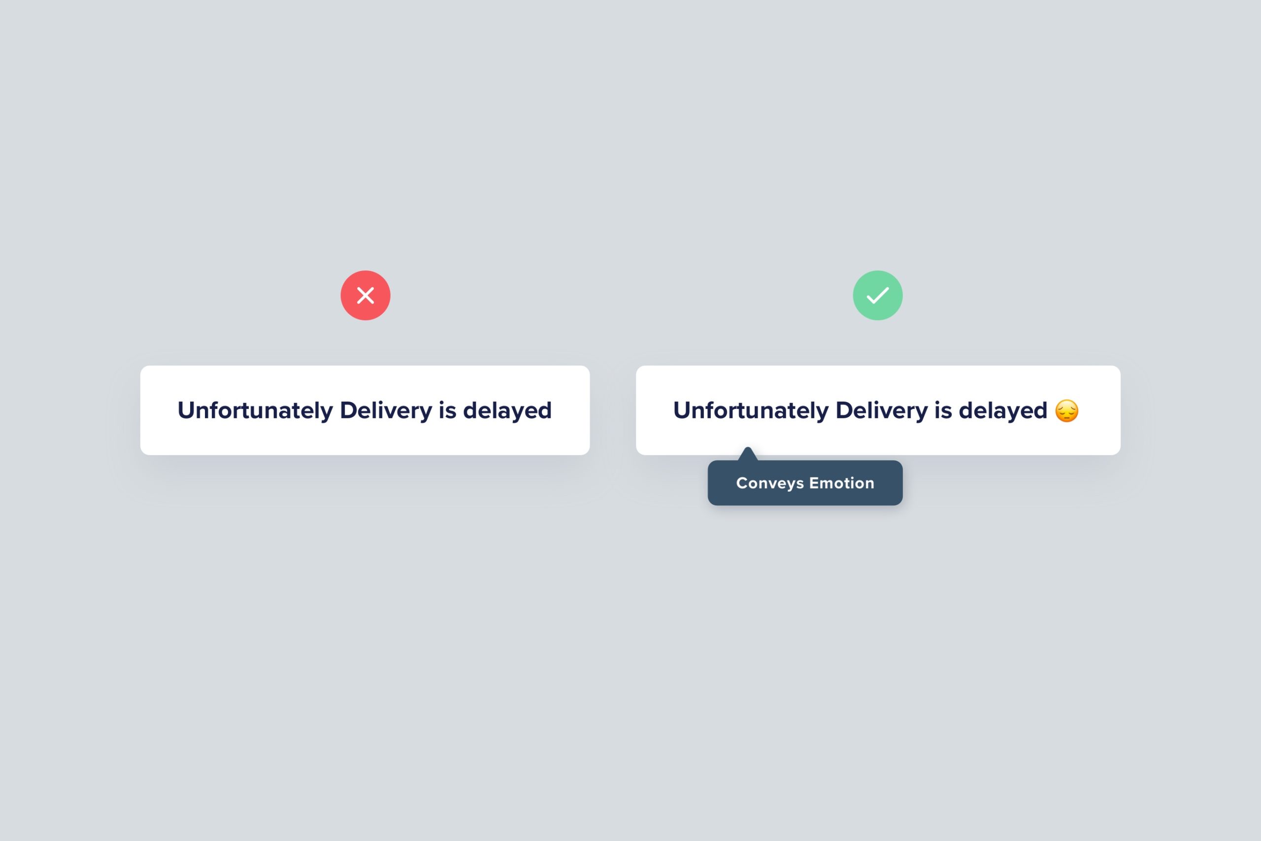 For instance, if you were to say 'unfortunately delivery is delayed' it can sound cold. A sad face can send a more personal, emotive message.