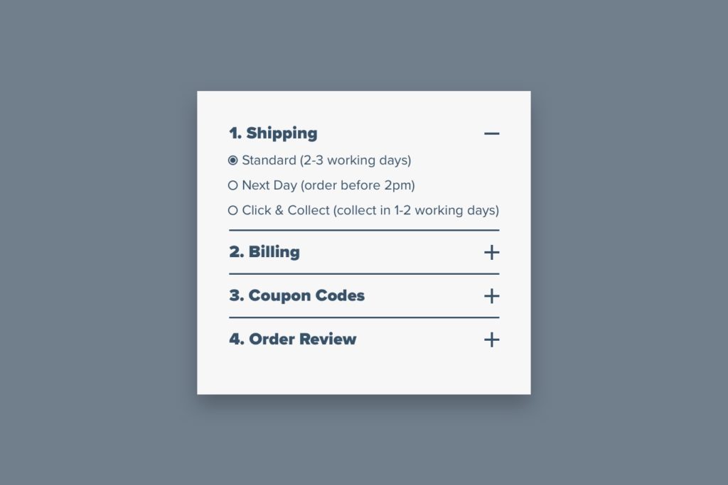 If you follow this structure, users can enact checkout in five simple stages, that provide clarity and reassurance.