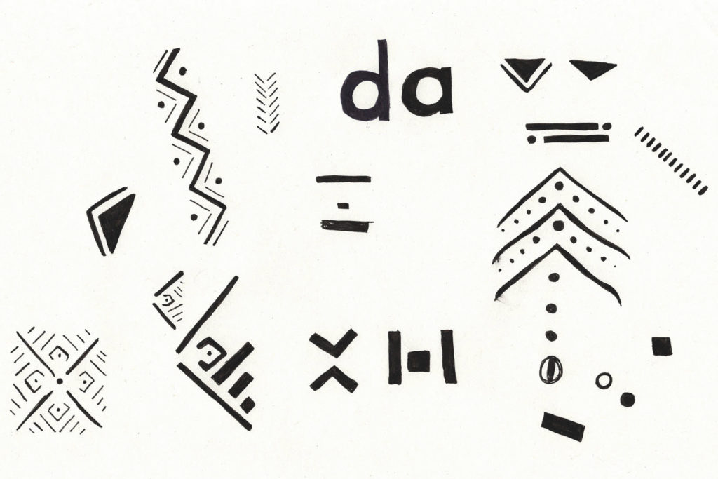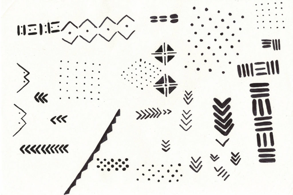 During the research phase of the process, we came across this image of African mud cloths. We were immediately inspired by the hand-drawn black patterns on a cream background.