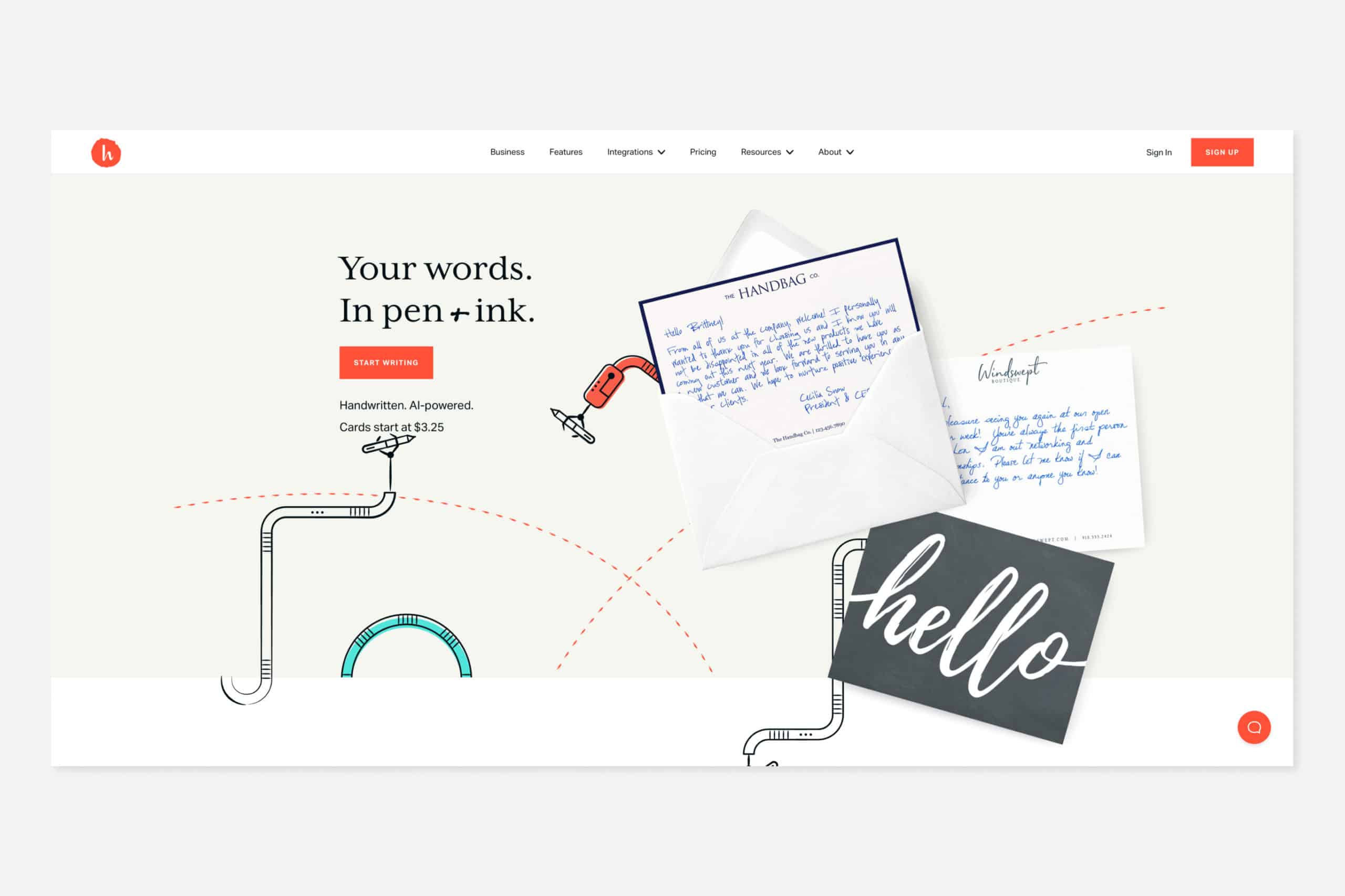 AI-powered letter-writing software Handwrytten cleverly uses animation to bring reassurance and a friendly tone to their service.