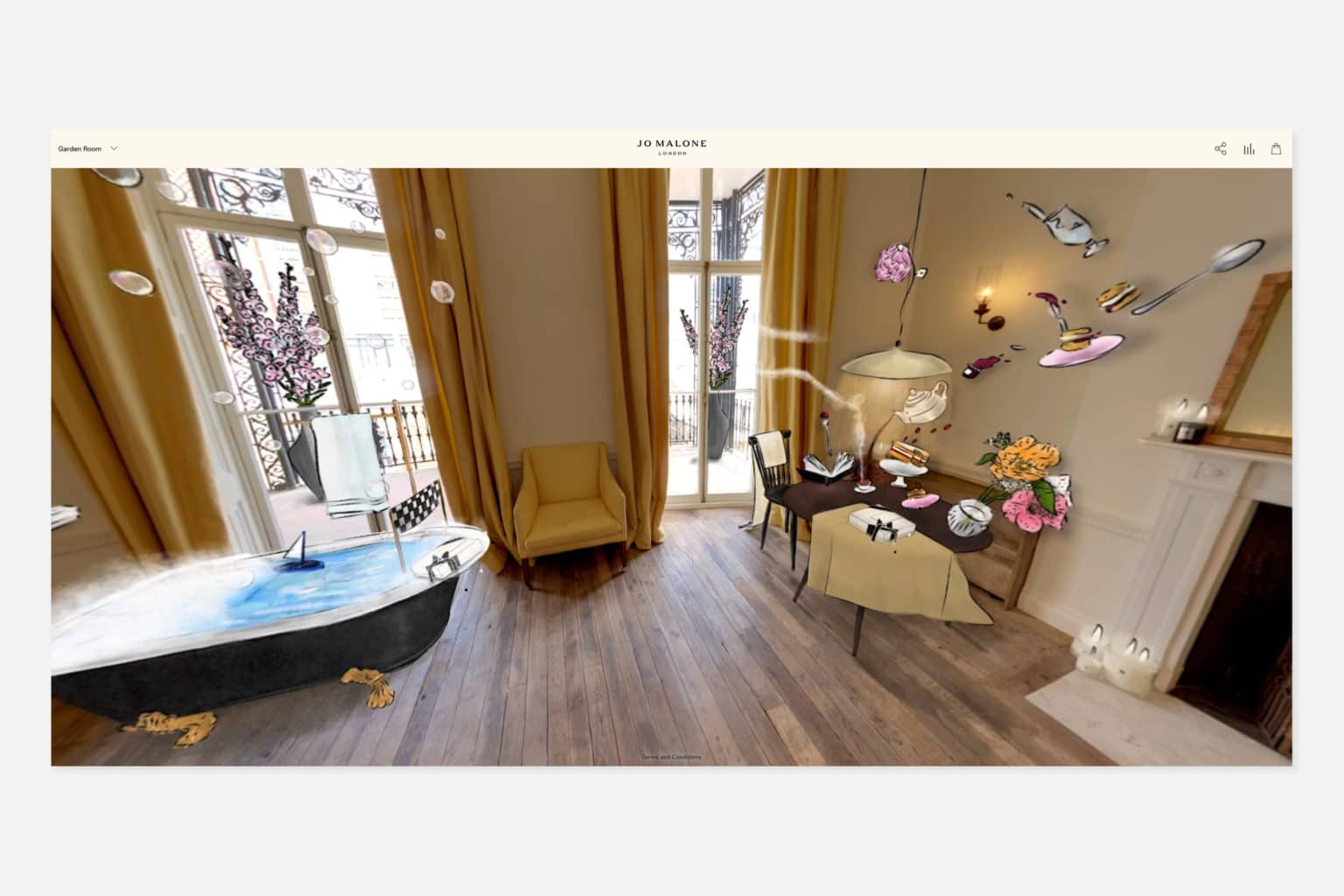 Combining VR, animation, and music, users make their way through a range of rooms in the townhouse, including the Secret Garden, Parlour, and Drawing Room to explore the products on offer.