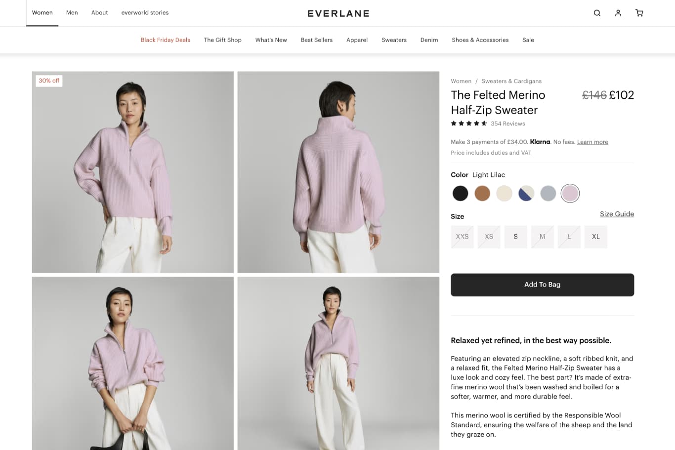 Once users reach individual product pages, you should be offering helpful information about the item they are viewing, and make it as straightforward as possible to add that item to their basket.