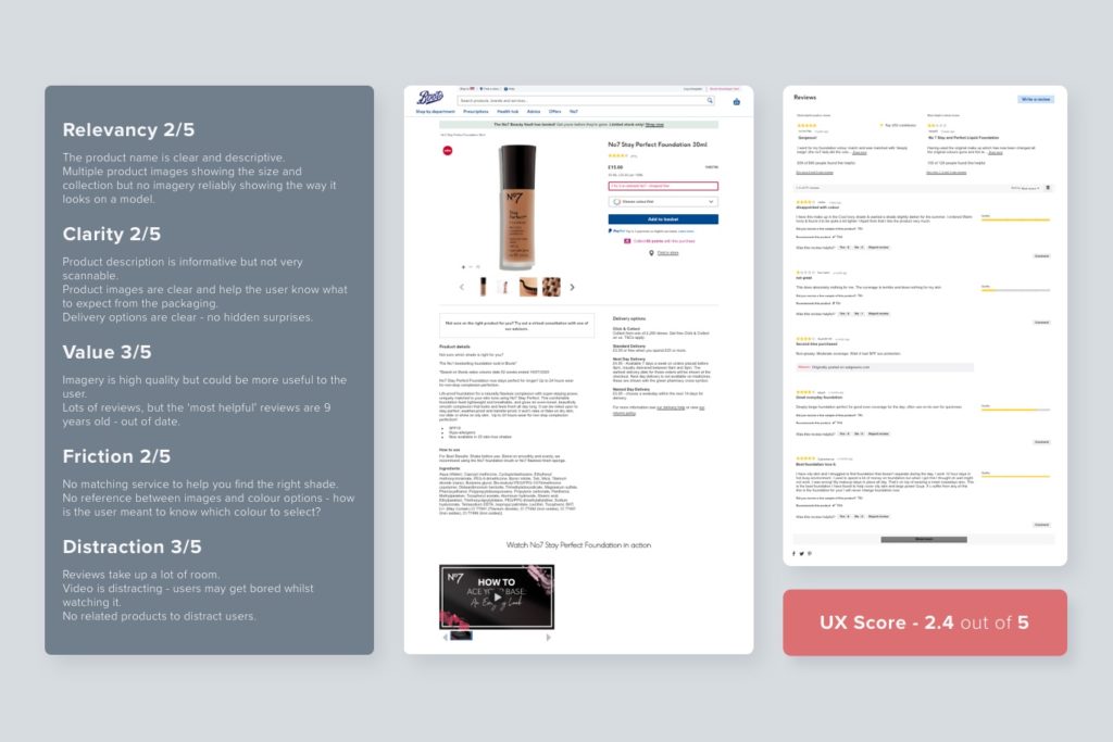 In contrast, Boots’ product page for a similar product doesn’t offer the same value and causes some friction for users.