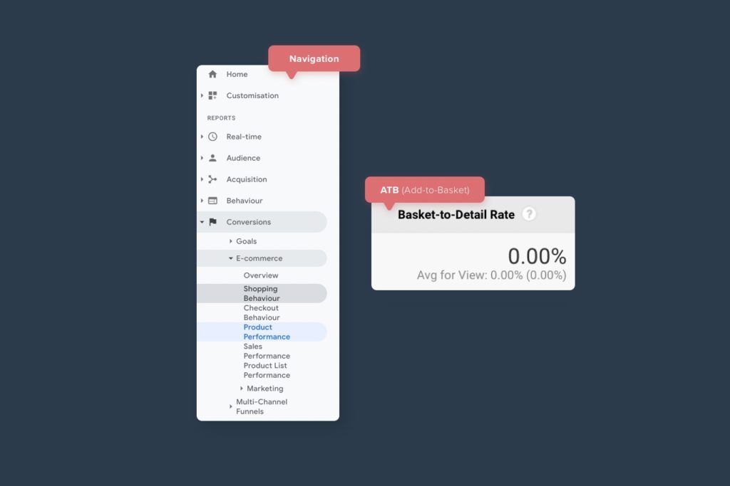 To discover your ATB rate, head to the Google Analytics profile for your site and find it by heading to Google Analytics > Conversions > eCommerce > Product.