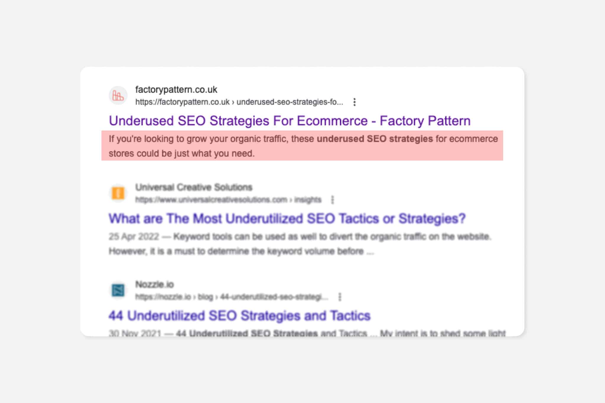 Include your keyword or phrase in your meta description and make sure it forms an engaging sentence or two that will encourage users to click.