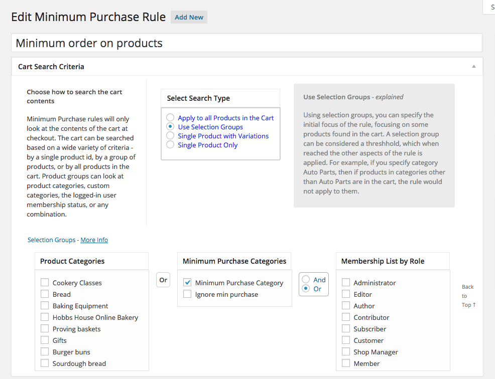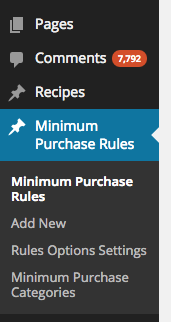 When you've installed the plugin, you'll get a new menu item called 'Minimum Purchase Rules'