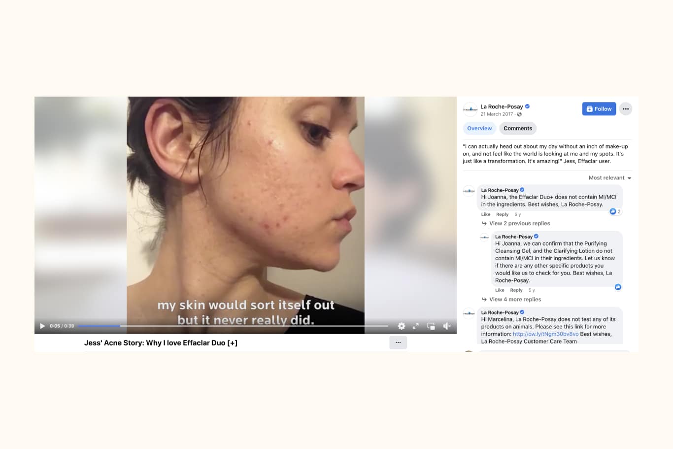 Beauty brand La Roche-Posay take their product review posts to the next level. It’s a mix of customer testimonials and how-to content, where the customer shares their experience of using La Roche-Posay products.