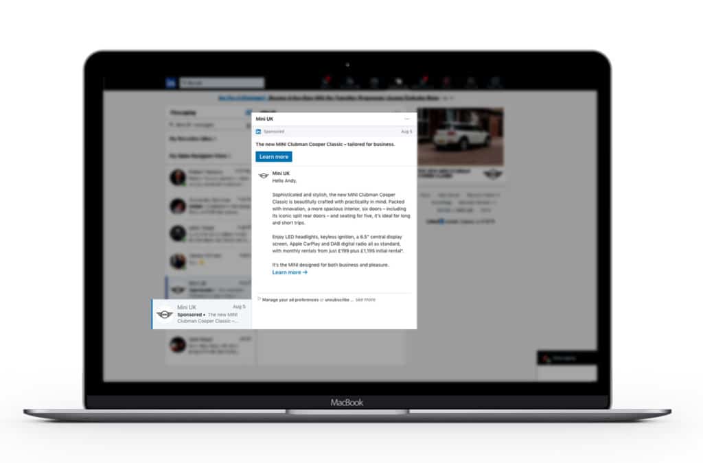 Looking for a more personalised approach to reaching new customers? Consider implementing a sponsored InMail ad campaign. InMail ads appear in the same way that regular messages do, but with an indicator that the message is coming from a sponsor.