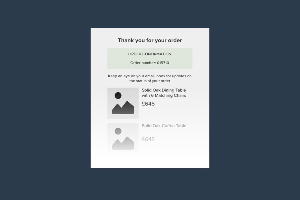 Another example of checkout UX good practice is providing a simple email confirmation after purchase. This should start with a message to thank them for placing an order with your company.