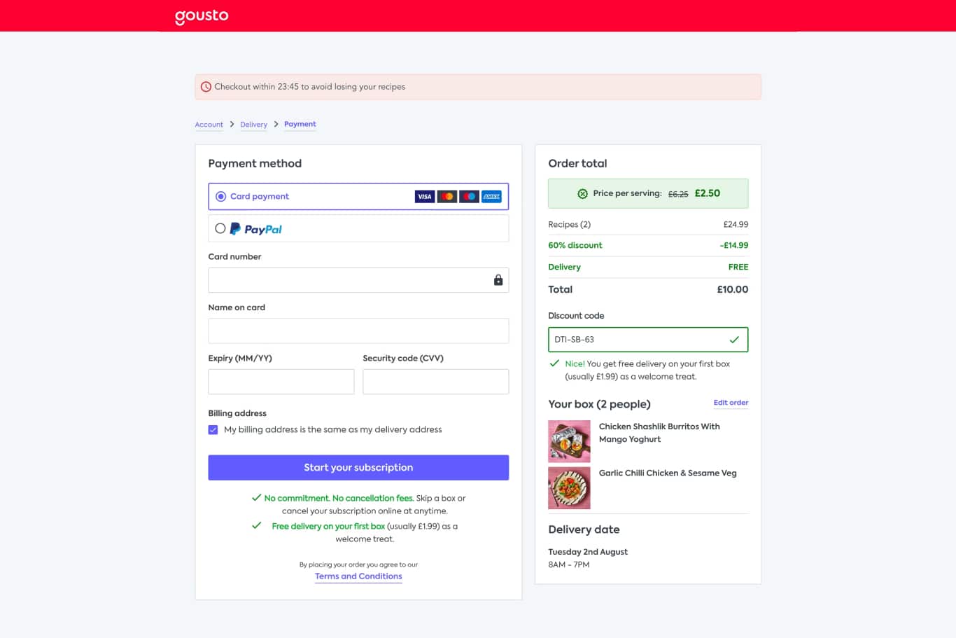 As soon as a user clicks to buy a product, they will experience their first interaction with your shopping basket. A successful basket shouldn’t get in the way of your users shopping experience, whilst also being intuitive and clear.